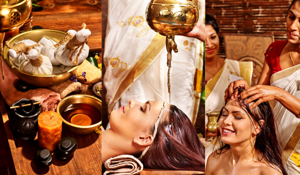 The procedure also includes external oleation with various Ayurvedic therapies like Abhyangam, Pizhichil, Sirodhara etc which involves massage of the whole body using herbal or medicated oils. The oils used depend on the individual’s dosha imbalance.
